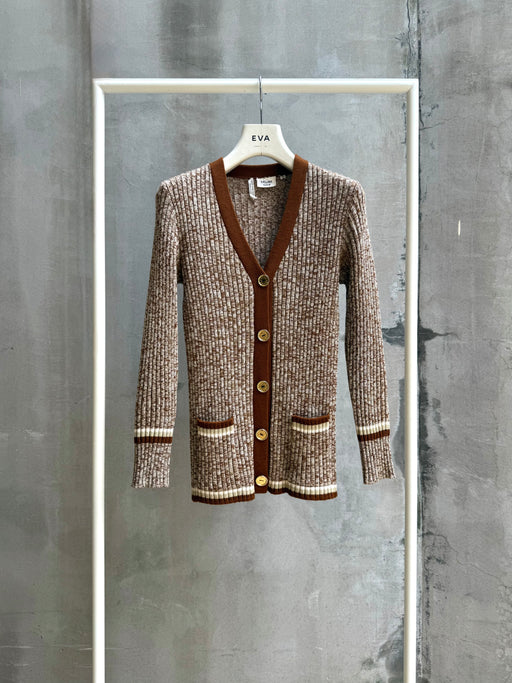 CELINE CAMEL BROWN WOOL KNIT CARDIGAN