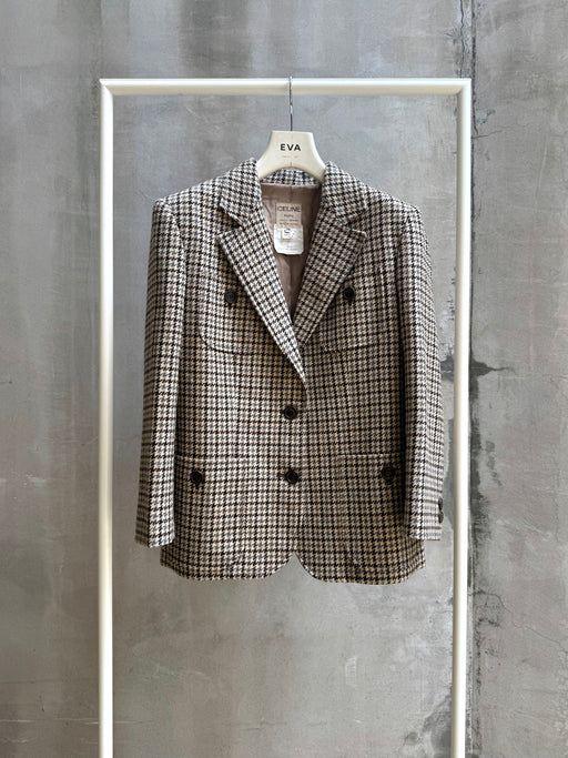 CELINE 80's HOUNDSTOOTH PATTERN CASHMERE WOOL JACKET