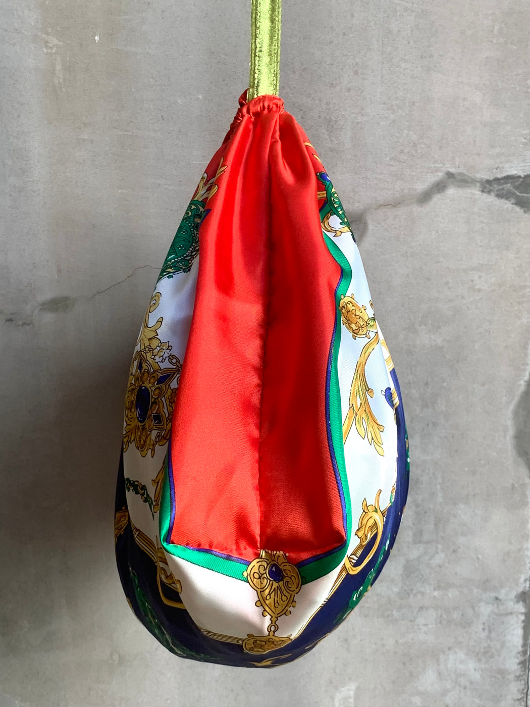 生地はヴィンテージのスカーフを使用し、すべて一点物。お友達や大好きなあの人へのプレゼントにも素敵ですね。
